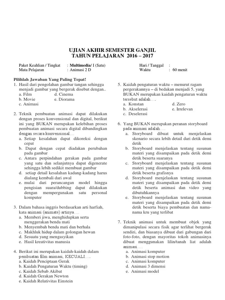 Soal Dan Jawaban Animasi 3 Dimensi Kelas 11 Semester 2 - Soal Animasi Lanjutan Dan Kunci Jawaban - Blog Yuri : Temukan gambar stok gratis terbaik tentang soal ujian.