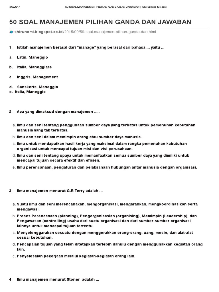Maybe you would like to learn more about one of these? Soal uas pengantar manajemen pilihan ganda. We did not find results for: Check spelling or type a new query.